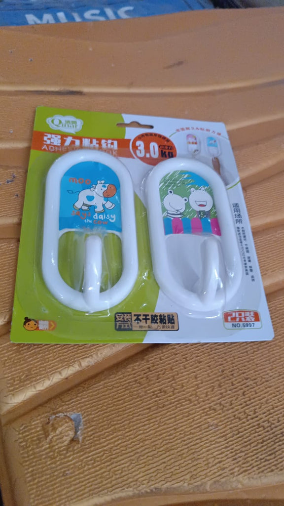 Multipurpose Strong Hook Self-Adhesive hooks for wall Heavy Plastic Hook, Sticky Hook Household For Home, Decorative Hooks, Bathroom & All Type Wall Use Hook, Suitable for Bathroom, Kitchen, Office (2 Pc Set)