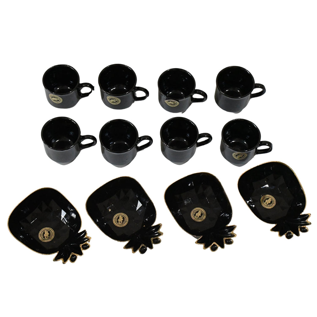 Pine Junction Ceramic Tea / cups / Mug Set With Pineapple Shape Serving Bowl Milk Cup, Coffee Cup, Tea Cup, Breakfast Cup, Drinking Mug or Outdoor for Household, Gift for Birthday, Wedding Party (12 Pcs set)